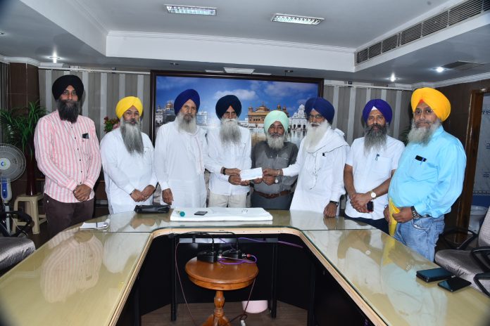 ਸ. ਭਗਵੰਤ ਸਿੰਘ ਸਿਆਲਕਾ ਨੇ ਗੁਰਦੁਆਰਾ ਕਮੇਟੀ ਦੇ ਪ੍ਰਧਾਨ ਸ. ਗੁਰਜੀਤ ਸਿੰਘ ਨੂੰ ਸੌਂਪਿਆ ਚੈੱਕ
