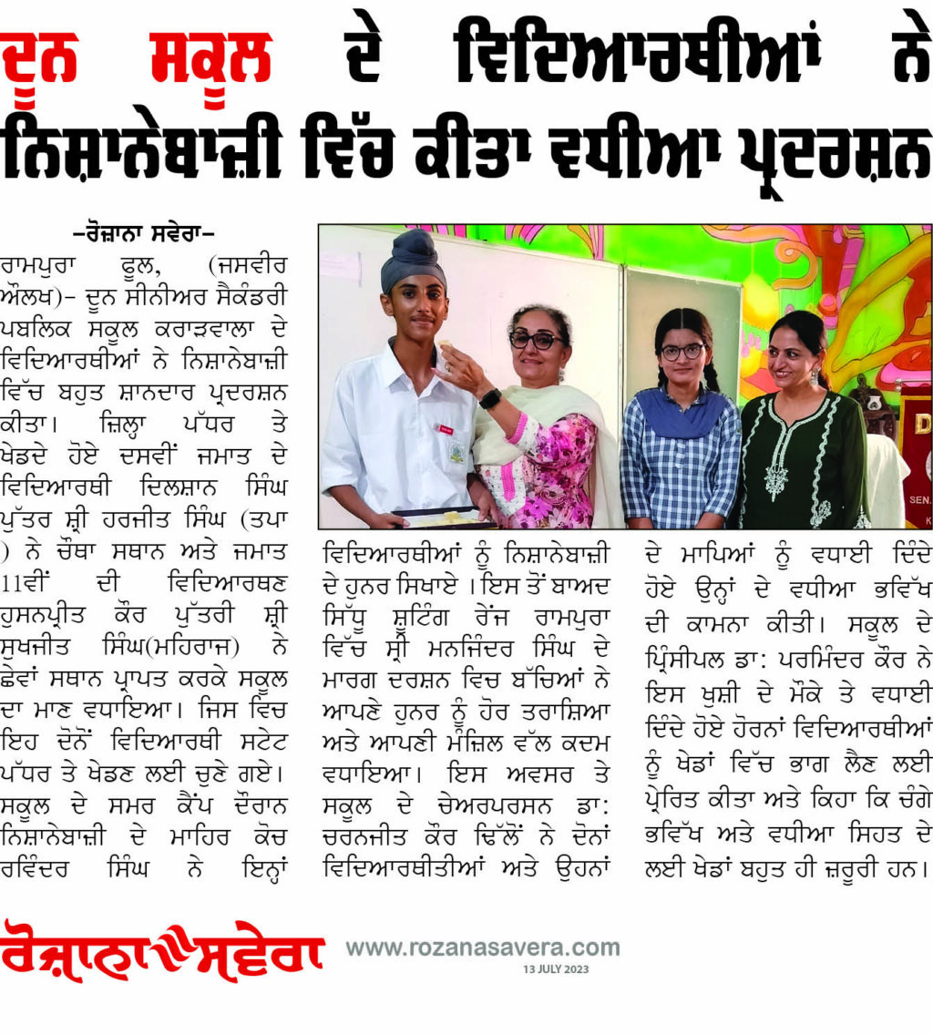 ਸਿੱਖਿਆ ਪੰਜਾਬ ਦੂਨ ਸਕੂਲ ਦੇ ਵਿਿਦਆਰਥੀਆਂ ਨੇ ਨਿਸ਼ਾਨੇਬਾਜ਼ੀ ਵਿੱਚ ਕੀਤਾ ਵਧੀਆ ਪ੍ਰਦਰਸ਼ਨ Rozana Savera July 13, 2023 Amanpreet Kaur (Marketing Coordinator) Rozana Savera See author's posts Tags: doon school Rampura Phul Continue Reading Previous: 17 ਜੁਲਾਈ ਨੂੰ ਖੁੱਲ੍ਹਣਗੇ ਪੰਜਾਬ ਦੇ ਸਾਰੇ ਸਕੂਲ- ਸਿੱਖਿਆ ਮੰਤਰੀNext: ਗਲੋਬਲ ਡਿਸਕਵਰੀ ਸਕੂਲ, ਰਾਮਪੁਰਾ ਫੂਲ ਵਿਖੇ ‘ਰਾਸ਼ਟਰੀ ਅੰਬ ਦਿਵਸ’ ਅਤੇ ‘ਰਾਸ਼ਟਰੀ ਮਾਪੇ ਦਿਵਸ’ ਮੌਕੇ ਗਤੀਵਿਧੀਆਂ ਕਰਵਾਈਆਂ Leave a Reply Cancel replyYour email address will not be published. Required fields are marked *Comment * Name * Email * Website Save my name, email, and website in this browser for the next time I comment. Related Stories ਪੰਜਾਬ: ‘ਬਲੈਕ’ ‘ਚ ਗੈਸ ਸਿਲੰਡਰ ਵੇਚਣ ‘ਤੇ ਹੋਵੇਗਾ ਸਖ਼ਤ ਐਕਸ਼ਨ, ਸਾਰੇ ਜ਼ਿਲ੍ਹਿਆਂ ਲਈ ਹੁਕਮ ਜਾਰੀ ਦੇਸ਼ ਪੰਜਾਬ ਪੰਜਾਬ: ‘ਬਲੈਕ’ ‘ਚ ਗੈਸ ਸਿਲੰਡਰ ਵੇਚਣ ‘ਤੇ ਹੋਵੇਗਾ ਸਖ਼ਤ ਐਕਸ਼ਨ, ਸਾਰੇ ਜ਼ਿਲ੍ਹਿਆਂ ਲਈ ਹੁਕਮ ਜਾਰੀ March 13, 2026 ਸੁਖਪਾਲ ਖਹਿਰਾ ਦਾ ‘ਆਪ’ ਸਰਕਾਰ ‘ਤੇ ਵੱਡਾ ਹਮਲਾ! ਮਹਿਲਾਵਾਂ ਦੇ ਜਸ਼ਨਾਂ ਨੂੰ ਦੱਸਿਆ ਯੋਜਨਾਬੱਧ ਚੰਡੀਗੜ੍ਹ ਪੰਜਾਬ ਰਾਜਨੀਤੀ ਸੁਖਪਾਲ ਖਹਿਰਾ ਦਾ ‘ਆਪ’ ਸਰਕਾਰ ‘ਤੇ ਵੱਡਾ ਹਮਲਾ! ਮਹਿਲਾਵਾਂ ਦੇ ਜਸ਼ਨਾਂ ਨੂੰ ਦੱਸਿਆ ਯੋਜਨਾਬੱਧ March 13, 2026 ਪੰਜਾਬ ‘ਚ ਇਨ੍ਹਾਂ ਵਾਹਨਾਂ ‘ਤੇ ਸ਼ੁਰੂ ਹੋਈ ਕਾਰਵਾਈ, ਧੜਾ-ਧੜ ਹੋ ਰਹੇ ਚਲਾਨ ਚੰਡੀਗੜ੍ਹ ਪੰਜਾਬ ਪੰਜਾਬ ‘ਚ ਇਨ੍ਹਾਂ ਵਾਹਨਾਂ ‘ਤੇ ਸ਼ੁਰੂ ਹੋਈ ਕਾਰਵਾਈ, ਧੜਾ-ਧੜ ਹੋ ਰਹੇ ਚਲਾਨ March 13, 2026