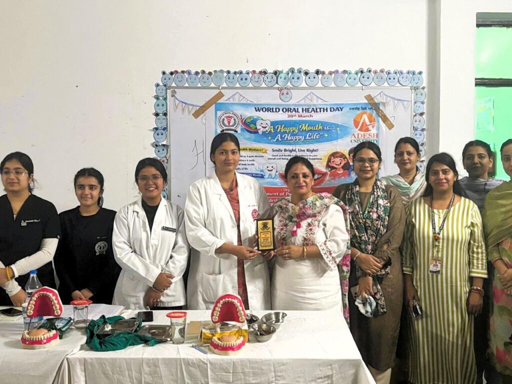 ਬਾਬਾ ਮੋਨੀ ਜੀ ਮਹਾਰਾਜ ਗਰੁੱਪ ਆਫ਼ ਕਾਲਜ਼ਿਜ, ਲਹਿਰਾ ਮੁਹੱਬਤ (ਬਠਿੰਡਾ) ਵਿੱਚ ਆਦੇਸ਼ ਯੂਨੀਵਰਸਿਟੀ ਦੇ ਪਬਲਿਕ ਹੈਲਥ ਡੈਂਟਿਸਟਰੀ ਵਿਭਾਗ ਵੱਲੋਂ ਇੱਕ ਦੰਦਾਂ ਦਾ ਚੈੱਕਅੱਪ ਕੈਂਪ ਲਗਾਇਆ ਗਿਆ। ਇਸ ਕੈਂਪ ਵਿੱਚ ਡਾਕਟਰਾਂ ਦੀ ਟੀਮ ਨੇ ਵਿਦਿਆਰਥੀਆਂ ਦੇ ਦੰਦਾਂ ਦੀ ਜਾਂਚ ਕਰਕੇ ਉਨ੍ਹਾਂ ਨੂੰ ਮੁਫ਼ਤ ਸਿਹਤ ਸੰਬੰਧੀ ਜਾਣਕਾਰੀ ਦਿੱਤੀ। ਕੈਂਪ ਦੌਰਾਨ ਵਿਦਿਆਰਥੀਆਂ ਨੂੰ ਮੌਖਿਕ ਸਿਹਤ ਬਾਰੇ ਜਾਗਰੂਕ ਕੀਤਾ ਗਿਆ ਅਤੇ ਦੰਦਾਂ ਦੀ ਸਫ਼ਾਈ ਨਾਲ ਸੰਬੰਧਿਤ ਸਹੀ ਤਰੀਕਿਆਂ ਬਾਰੇ ਵੀ ਜਾਣਕਾਰੀ ਦਿੱਤੀ ਗਈ। ਇਸ ਮੌਕੇ ਡਾ. ਹਰਸ਼ ਨੇ ਵਿਦਿਆਰਥੀਆਂ ਨੇ ਕਿਹਾ ਕਿ ਅਜਿਹੇ ਕੈਂਪ ਸਿਹਤ ਸੰਬੰਧੀ ਜਾਗਰੂਕਤਾ ਲਈ ਬਹੁਤ ਹੀ ਜਰੂਰੀ ਹਨ ਅਤੇ ਸਮਾਜ ਵਿੱਚ ਨਿਯਮਿਤ ਤੌਰ ‘ਤੇ ਇਸ ਤਰ੍ਹਾਂ ਦੇ ਕੈਂਪ ਕਰਵਾਉਣੇ ਚਾਹੀਦੇ ਹਨ। ਕਾਲਜ ਦੇ ਪ੍ਰਿੰਸੀਪਲ ਡਾ. ਰਜਨੀ ਚੌਧਰੀ ਨੇ ਡਾਕਟਰਾਂ ਦੀ ਟੀਮ ਦਾ ਧੰਨਵਾਦ ਕੀਤਾ ਅਤੇ ਵਿਦਿਆਰਥੀਆਂ ਨੂੰ ਕੈਂਪ ਵਿੱਚ ਭਾਗ ਲੈਣ ਲਈ ਉਤਸ਼ਾਹਿਤ ਕੀਤਾ।